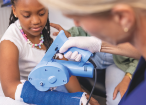 Delta-Cast® Serene™ delivers a safer, more comfortable cast removal experience for clinicians while reducing anxiety for patients.. Its static, concealed blade cuts efficiently through multiple layers of synthetic cast material without generating airborne particles, heat, or vibrations. The lightweight, balanced design allows for easy one-handed use, simple maintenance, and true portability without the need for a vacuum system. With reduced noise, enhanced safety features, and a patient-friendly design—especially for pediatrics—Delta-Cast® Serene™ creates a more comfortable, efficient, and less stressful cast removal experience.